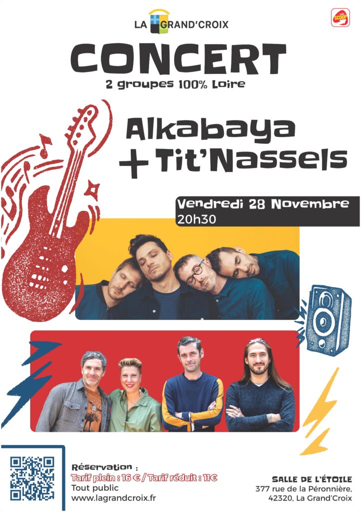 Depuis + de 10 ans, le groupe porté par Bastien (chant), Florian, Thibaut et Anthony, délivrent une chanson pop française très ancrée dans son temps, dans la mouvance de MPL ou Boulevard des Airs. S’appuyant sur des mélodies imparables, les textes à la fois intimes et engagés nous parlent. Il y a du Gaël Faye dans l’écriture, du Ben Mazué dans le flow, du Lavilliers dans le timbre… Pointant en toute lucidité les absurdités du monde, les quatre garçons nous invitent à dénicher un peu de poésie dans le chaos, à relever la tête et à lâcher prise, face aux vents contraires. Portés sur une solide section guitare-claviers-batterie, des instruments mélodiques viennent enrichir l’ensemble d’une musicalité lumineuse. Au fil des années, chaque album fait mouche, et témoigne d’une cohésion qui ne cesse d’enrichir le projet musical et humain. ALKABAYA est un groupe taillé pour la scène, véritable invitation à la fête ! Avec + de 450 concerts, il déploie ses ailes, avec ce même sens du partage, et sillonne sans relâche les routes de France et au-delà. De salles en festivals, chaque concert est une bouffée d’air, une généreuse incitation à penser et à danser.